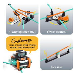Kit STEM Thames & Kosmos RoboRails, finalista do brinquedo do ano, construa um sistema robótico de monotrilho com divisores, interruptor cruzado, mecanismo de gangorra, modelo moderno de trem, explore a física, forças giroscópicas – construa um robô que percorra uma trilha de monotrilho sobre uma roda, graças a uma unidade de giroscópio motorizada com um sistema inteligente de peso de rolamento de esferas que reduz o atrito, permitindo que, o robô para se manter equilibrado por mais tempo. – Levando modelos clássicos de trens para o futuro, as crianças podem reconfigurar de forma rápida e fácil os segmentos de trilhos agrupados em inúmeras possibilidades; monte os 26 designs de trilhas sugeridos no manual ou crie os seus próprios! – Três conectores exclusivos (a gangorra, (2) divisores de 3 vias e um interruptor cruzado) adicionam curvas, curvas e obstáculos divertidos às suas rotas! – O manual ilustrado em cores de 32 páginas transforma esse divertido conjunto de edifícios em uma valiosa ferramenta de aprendizado, fornecendo instruções de montagem passo a passo, bem como explicações científicas que abordam conceitos físicos importantes, como movimento rotacional, aceleração, momento angular e muito mais. – O design aberto promove o pensamento crítico e as habilidades de resolução de problemas, bem como imaginação e criatividade. – Finalista do Brinquedo do Ano de 2025!