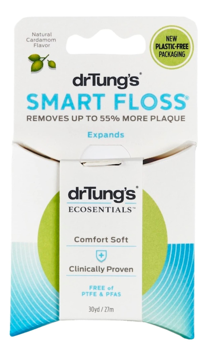 Dr. Tung's Smart Floss, 30 metros, sabor natural de cardamomo, 1 colher de chá. As cores podem variar (pacote com 10) — FIO DENTAL EXPANSÍVEL NATURAL — Nosso fio dental totalmente natural é um fio dental expansível que foi projetado para entrar em espaços de difícil acesso. Ele se alonga e se expande para limpar melhor os dentes com um fio dental clinicamente comprovado de 55% – FORTE E SUAVE – Nosso fio dental expansível e suave é mais macio para os dedos, mas é resistente a espaços difíceis de alcançar. Limpa facilmente espaços apertados e mais amplos – deixando os dentes até 55% mais limpos e você sorrindo por mais tempo – FIO DENTAL COM SABOR DE CARDAMOMO – Nosso fio dental premium é naturalmente aromatizado com cardamomo, deixando você com a sensação agradável de uma boca recém-limpa. Também é naturalmente livre de alérgenos e livre de BPA e PTFE. – MAIS SUAVE PARA AS GENGIVAS – Ao contrário de outros fios sem mola que geralmente podem machucar as gengivas, esse fio dental revolucionário foi projetado para ser mais suave com as gengivas. É macio, elástico e pode limpar locais de difícil acesso – SOBRE NÓS – Nossos produtos surgiram da paixão por trazer sorrisos saudáveis de forma natural. Desde o início, a DrTung's tem estado na vanguarda, fornecendo produtos inovadores para um hálito mais fresco e sorrisos mais saudáveis
