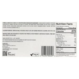 Aviso para alérgicos: Contém leite, pistache, trigo, soja. pode conter frutos secos (amêndoa, avelã), ovo.