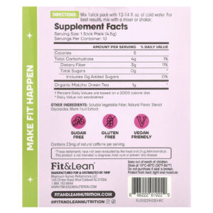 Fit & Lean Chá Gelado Matcha Amore Chá de Framboesa 10 Embalagens 45 g (016 oz) Cada