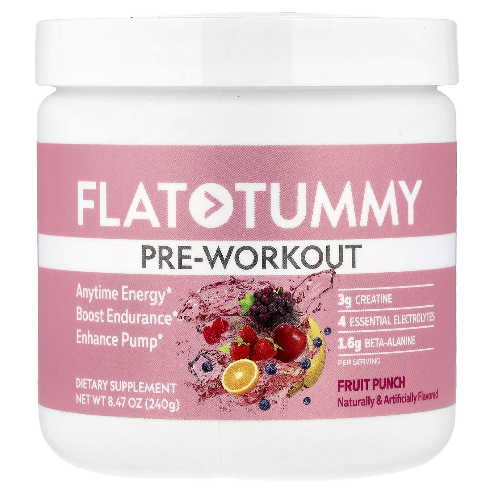 Flat Tummy Pré-treino Ponche de Frutas 240 g (847 oz) – Flat Tummy Nutrição Esportiva Suplementos Pré-treino Pré-treino estimulante.