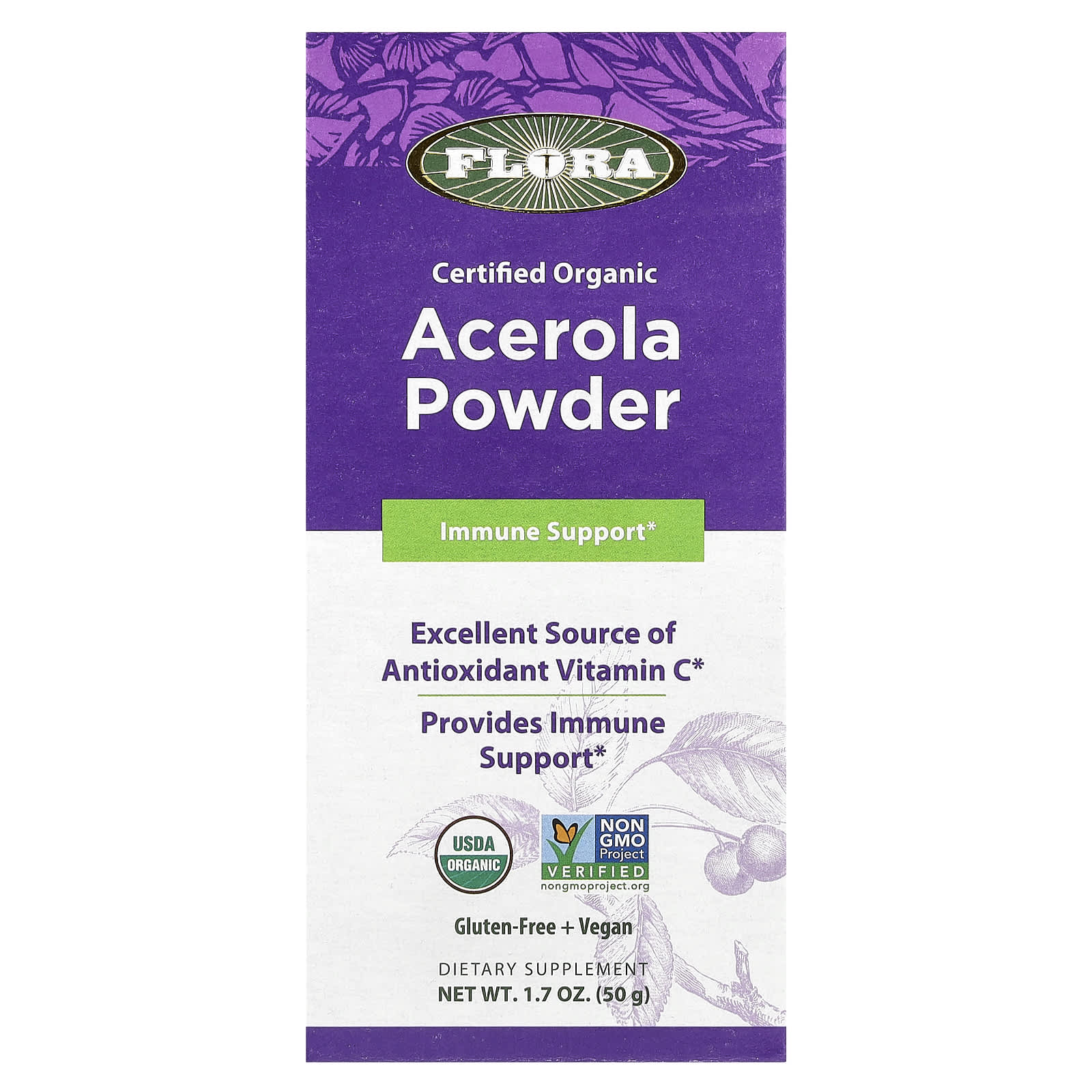 Flora Acerola Orgânica Certificada em Pó 50 g (17 oz) – Flora Suplementos Vitaminas Vitamina C.