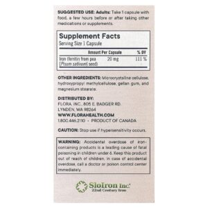 Flora Ferritin +® 30 Cápsulas Veganas de Liberação Retardada (20 mg por Cápsula) – Flora Suplementos Minerais Ferro.