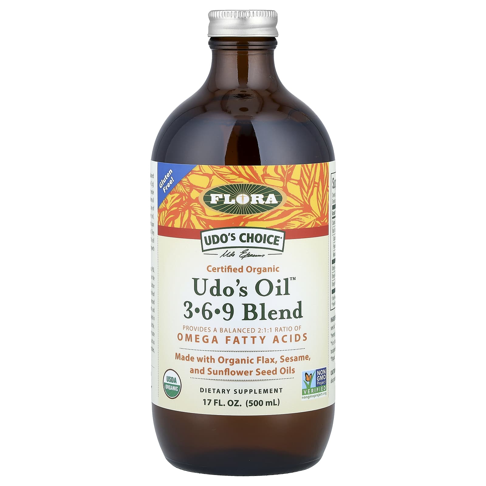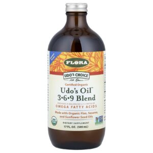 Flora Mistura de Óleo de Udo 3-6-9 500 ml (17 fl oz) – Flora Suplementos Ômegas e Óleos de Peixe (EPA/DHA) Ômega 3-6-9.