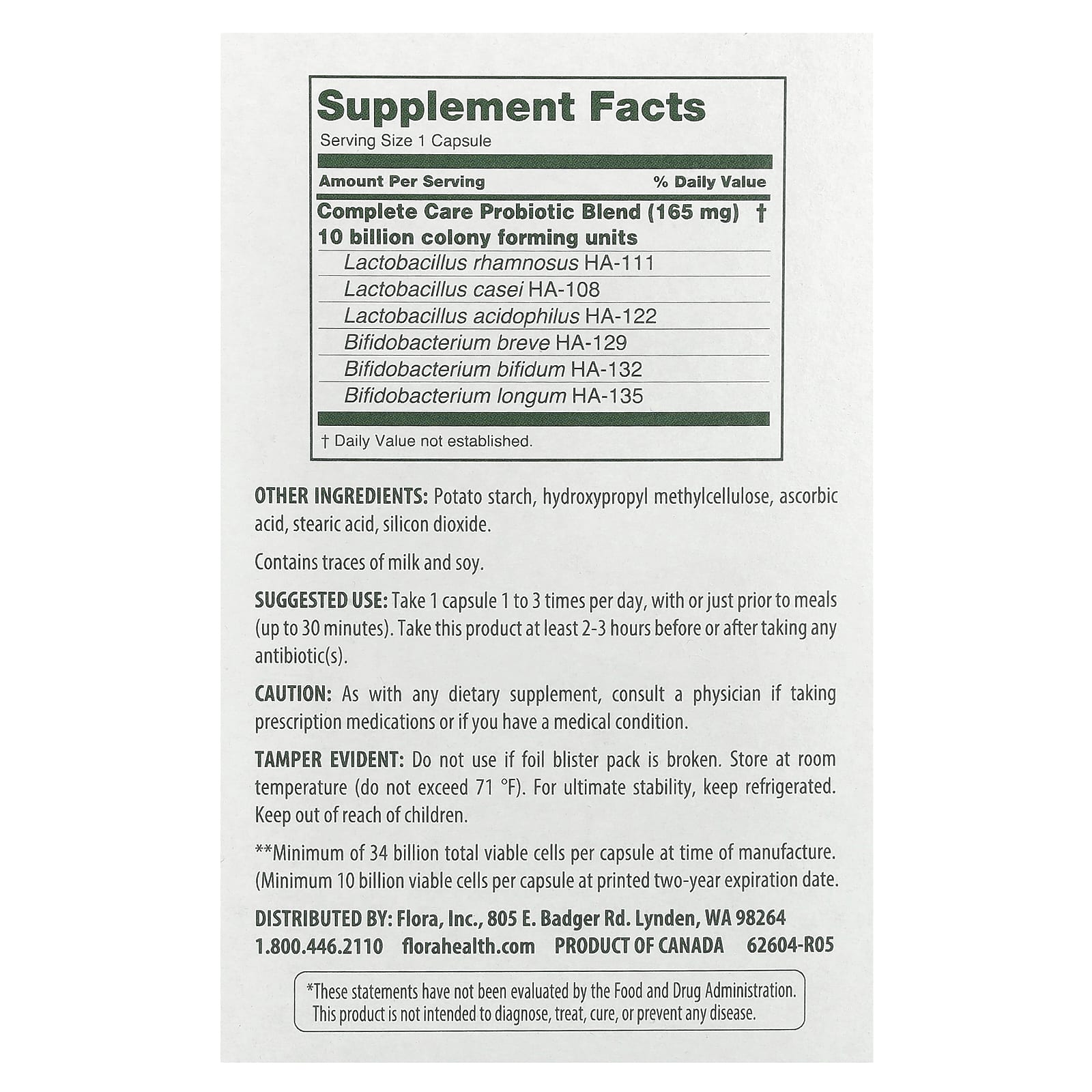 Flora Probiótico Complete Care 34 Bilhões de UFCs 30 Cápsulas Vegetarianas – Flora Suplementos Saúde Intestinal Probióticos.