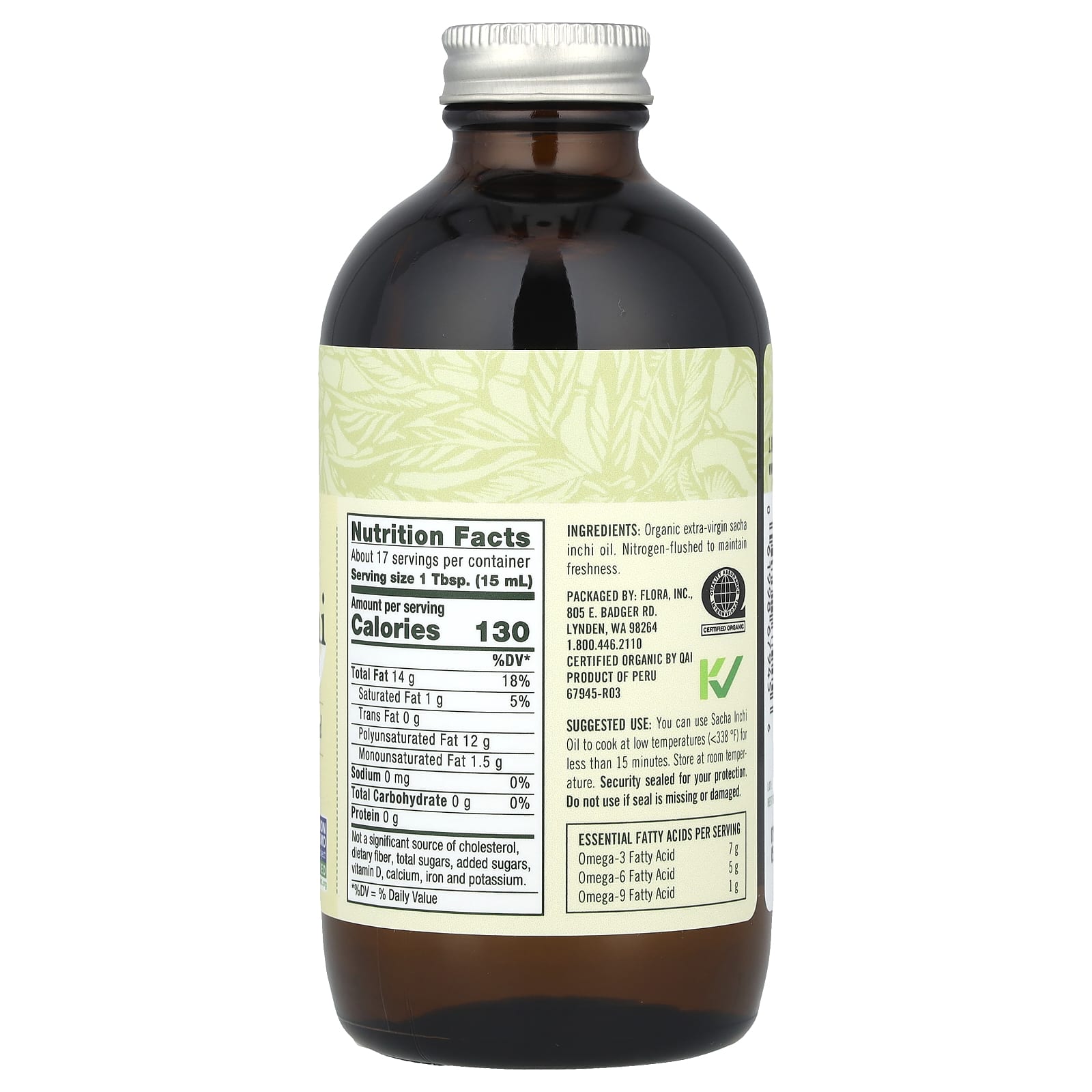 De origem sustentável e colhido de forma ética da floresta amazônica peruana, o Óleo de Sacha Inchi da Flora é um óleo de semente 100% extravirgem, prensado a frio a partir de sementes de Sacha Inchi (Plukenetia volubilis). O Óleo de Sacha Inchi da Flora fornece 7 g de ômega-3 por dose.