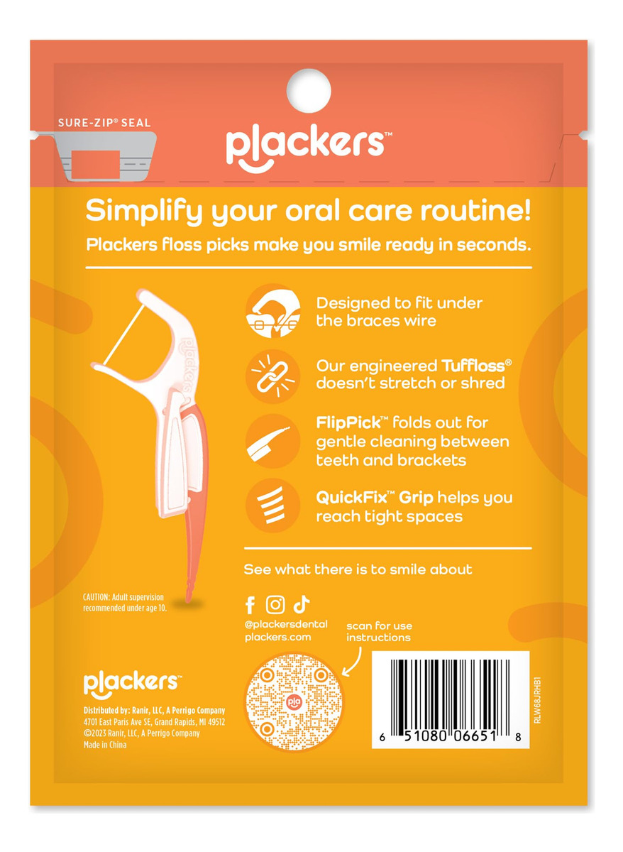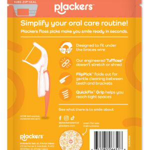 Palhetas de fio dental Plackers Orthopick, sem sabor, projetadas para aparelhos ortodônticos, flipPick dobráveis, tuffloss, fáceis de armazenar com selo de zíper seguro, 36 unidades (pacote com 4) — HAPPY MOUTH, HAPPY LIFE: inclui 36 palitos de fio dental ortodôntico para remover a placa bacteriana e manter seu sorriso — Projetado para caber sob o fio do aparelho ortodôntico para limpar suavemente entre os dentes — Tuffloss Projetado para não esticar, rasgar ou quebrar, este fio dental é a ferramenta definitiva para remover restos de comida presos e manter as gengivas limpas e saudáveis – FLIPPICK: o palito dental dobrável ajuda a limpar os dentes e dobras para segurança e conveniência, perfeita para guardar enquanto você estiver viajando ou em casa – FÁCIL ARMAZENAMENTO: a bolsa que pode ser fechada novamente com selo Sure-Zip é excelente para atendimento odontológico em qualquer lugar ou em casa