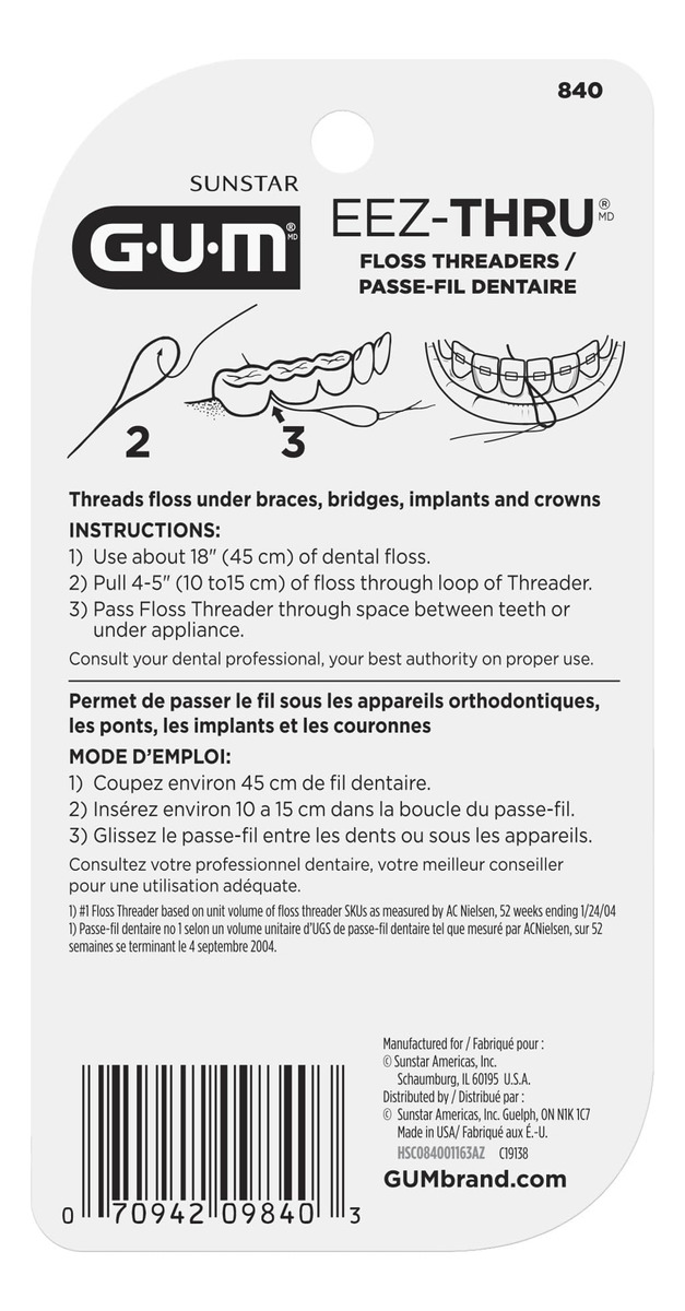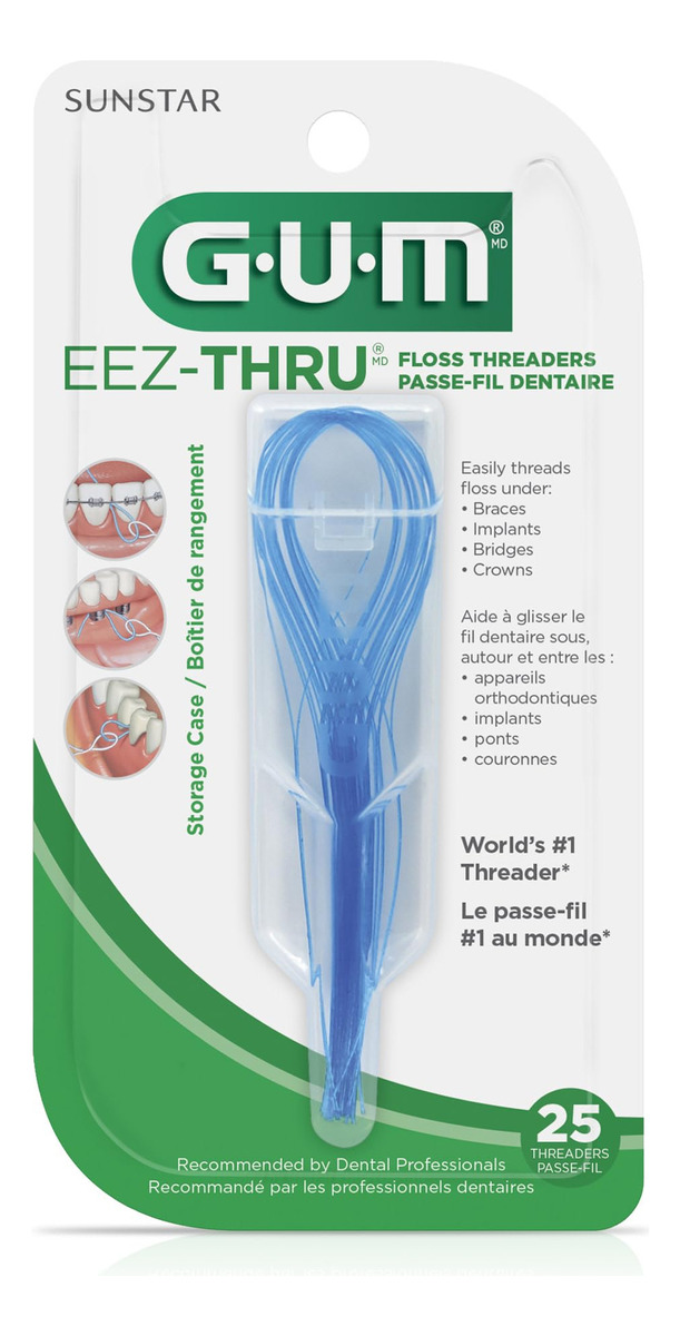 Rosqueadores de fio dental GUM Eez-Thru, fios dentais para aparelhos ortodônticos, pontes e implantes, 25 quilates (pacote com 6) — PERFEITOS PARA APARELHOS E PONTES: os passadores de fio dental GUM Eez-Thru são uma ferramenta de uso de fio dental projetada especificamente para passar o fio dental diário sob aparelhos ortodônticos, pontes fixas e implantes dentários. – Seguro e confortável: cada fio dental O enfiador de fio dental possui uma construção flexível de náilon que alcança espaços pequenos com segurança e conforto para remover a placa bacteriana e as partículas de alimentos para um hálito mais fresco e dentes e gengivas mais saudáveis. – RECOMENDADO PELO DENTISTA: Nossos enfiadores de fio dental para pontes e aparelhos dentários são recomendados por profissionais da odontologia como uma parte importante da manutenção da saúde bucal durante o uso de aparelhos dentários fixos. – ESTOJO HIGIÊNICO DE VIAGEM: Cada conjunto de aparelhos para gengivas vem em um estojo de plástico higiênico que cabe facilmente em bolsas, porta-luvas ou kits de higiene. – SAUDÁVEL COMEÇA AQUI: A pesquisa continua mostrando a conexão entre saúde bucal e saúde geral. A marca GUM está comprometida em fornecer produtos inovadores de higiene bucal que tornem a obtenção de uma saúde bucal ideal acessível a todos.
