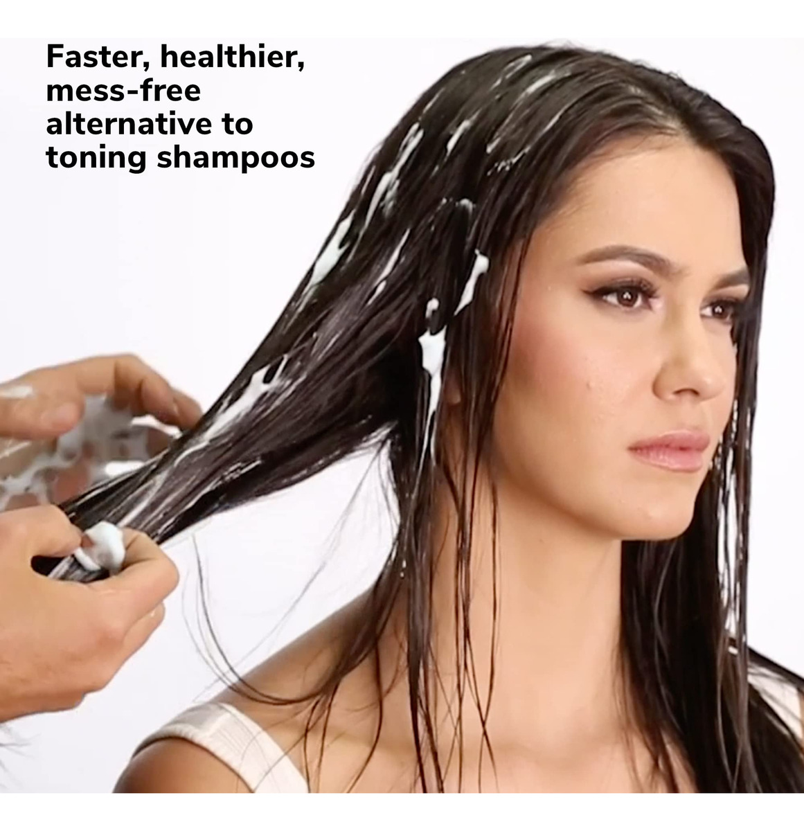 COLOR WOW Color Control + Toning Foam For Brunette Hair Eliminates yellow and brassiness; No stains; No alcohol; blue-tinted leave-in toning foam lightens hair in one use; silky, no-crunch volume – Blue-tinted foam neutralizes orange and brassy tones instantly – No-mess alternative to blue shampoo (use on wet or dry hair) – Never sticky, stiff or crunchy for shiny, bouncy, supple results – Also available for blonde hair – Heat protection