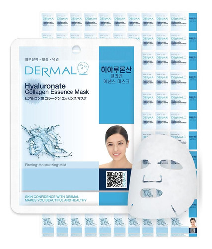 PRODUTO: Folha de máscara facial de essência de colágeno hialuronato DERMAL Pacote de 23g com 100 – Hidratante Hydro Boost para pele seca, suavização de linhas finas e rugas, máscara de folha de solução diária de tratamento de pele