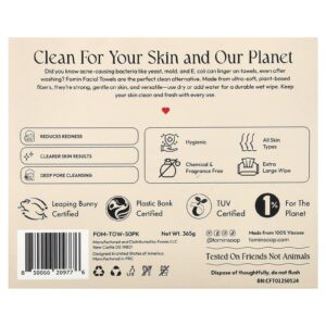 Você sabia que bactérias que causam acne, como fermento, mofo e E. coli, podem permanecer nas toalha, mesmo após a lavagem? As Toalhas Faciais Fomin são a alternativa limpa perfeita. Feitas de fibras ultramacias à base de plantas, elas são fortes, suaves para a pele e versáteis ao secar ou adicionar água para um lenço umedecido duradouro. Mantenha sua pele limpa e fresca a cada uso.