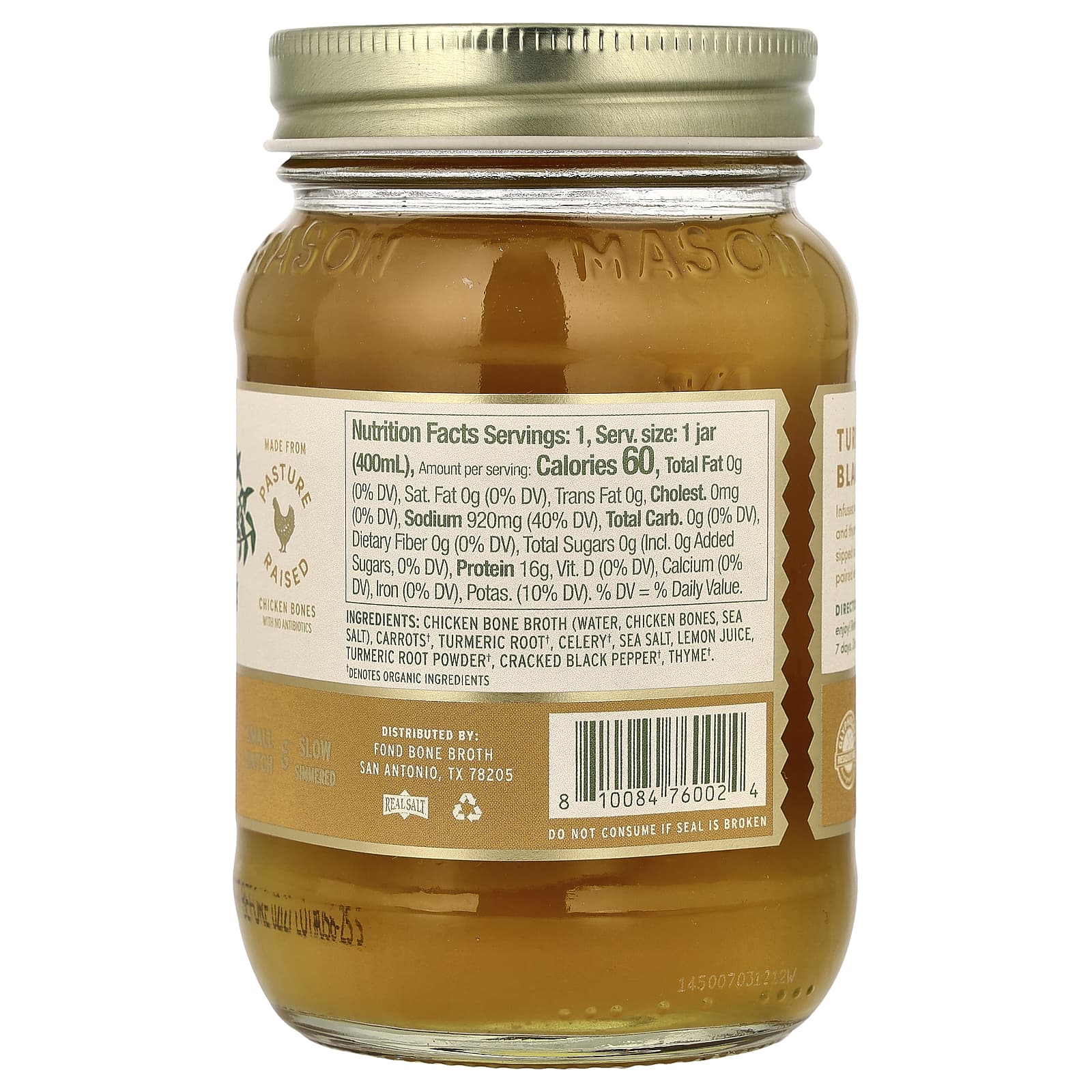 FOND Bone Broth Caldo de Osso de Frango Cúrcuma e Pimenta-do-reino 400 ml (14 fl oz) – Fond Suplementos Ossos, Articulações e Cartilagem Caldo de ossos.