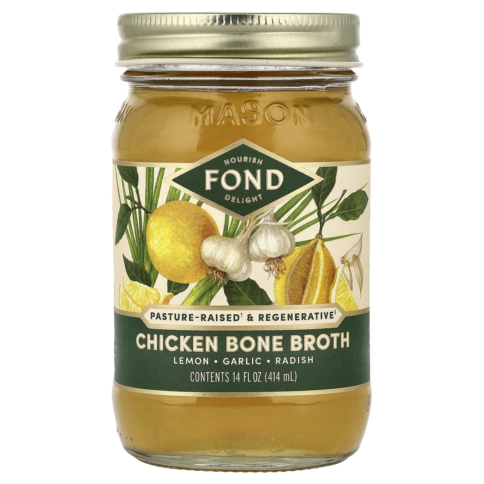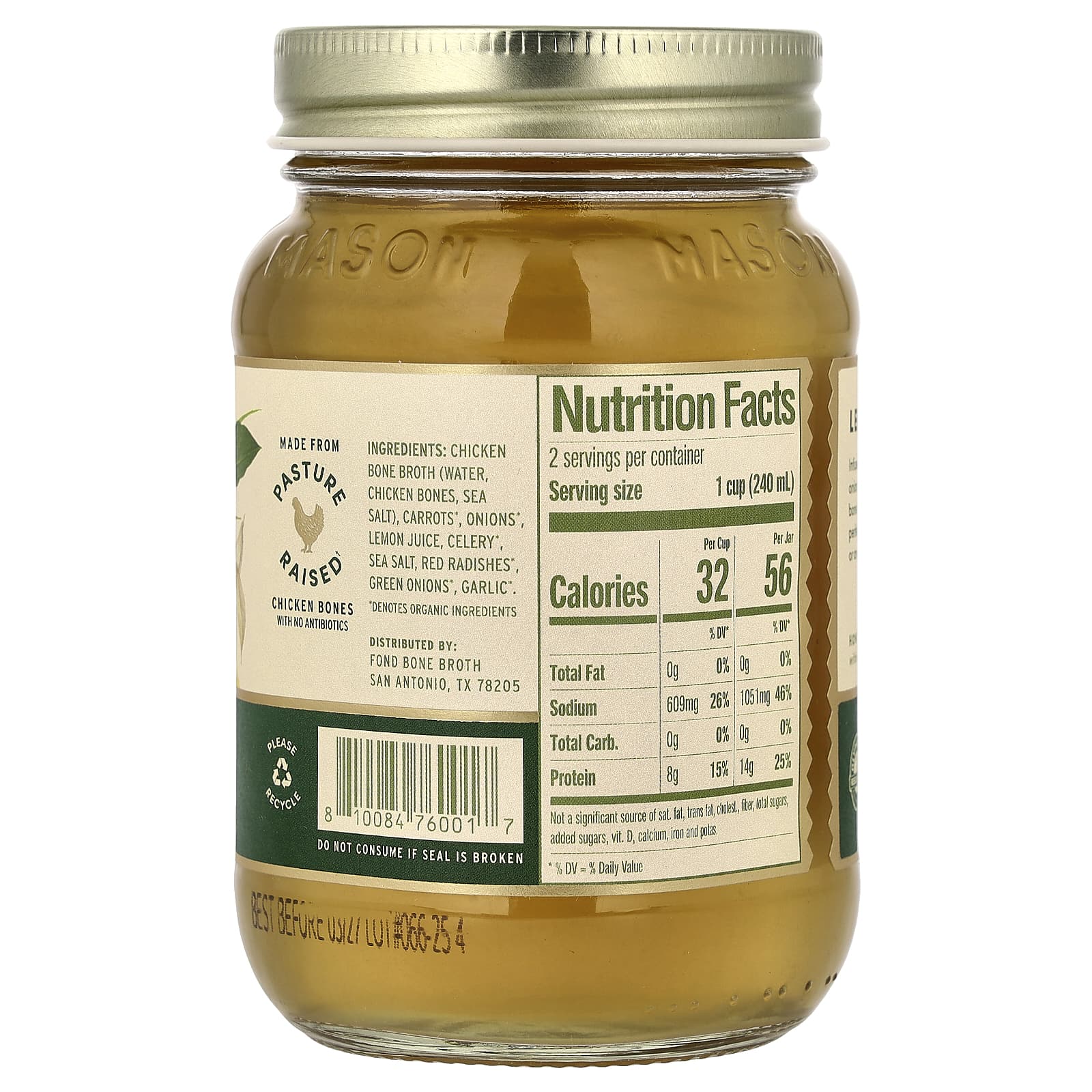 FOND Bone Broth Caldo de Osso de Frango Limão e Alho 414 ml (14 fl oz) – Fond Suplementos Ossos, Articulações e Cartilagem Caldo de ossos.