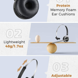 5. LIGHTWEIGHT & COMFORT – mais leve que um ovo, 48g/0,17oz de cabeça leve não vai pesar você para baixo. As almofadas de espuma de memória de proteínas suaves se encaixam suavemente nos seus ouvidos por usar conforto duradouro. Sem calor, sem suor, e ideal para condutores ou empresários. A banda de cabeça ajustada se encaixa facilmente em diferentes tamanhos de cabeça.
