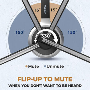 2. FLIP-TO-MUTE & MULTI-FUNCTION BUTTON – A melhor característica é a função de invertir-para-silenciar. Easily silence/unmute by flipping up/down the boom. Quando você não quer ser ouvido, simplesmente volte à mão. Além disso, o botão Multi-funções pode responder/terminar/redial chamada e ativar o Siri ou o assistente do Google. Deixe você gostar de chamar sem mãos.