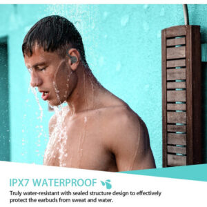 DESIGN ESPORTIVO: Os fones de ouvido tws de natação sem fio verdadeiro oferece uma experiência sem fio e sem as mãos. Ajuste seguro e confortável e o design à prova d'água IPX7 torna os fones de ouvido perfeitos para esportes e natação. Sem fio incômodo, liberte suas mãos entre exercícios prolongados.