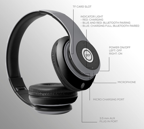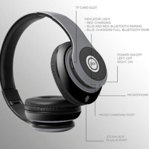 iJoy Bluetooth Headphones Over Ear, Wireless and Wired Foldable Headset Built-in Microphone, FM, Micro SD Card Slot – (Stealth) Adults Kids Men Women – Audifonos Auriculares Inalambricos – Deep, accurate bass response,Extended frequency range, Rechargeable – 5-button control, including Play/pause/answer/hangup,Equalizer,Next track/volume up, Previous track/volume down – Ear cups fit around ears to help isolate audio, Foldable design for easy carry, noise canceling design – Micro SD card plug-in, built in Radio receiver, Built in Mic for Hands Free calling – New: 6 MONTHS!! exchange warranty! If your headset breaks or is damaged for any reason, Pranx will provide you with a FREE replacement!