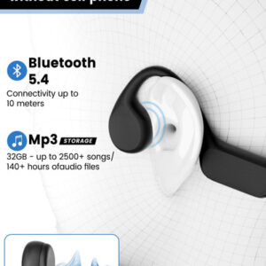Fones de ouvido de condução óssea – Excelente desempenho à prova d'água: esses fones de ouvido de natação são feitos com tecnologia e artesanato à prova d'água IPX8, podendo ser usados ao nadar ou se molhar. Adequado para esportes ao ar livre e em ambientes fechados – MP3 e Bluetooth 2 em 1: esses fones de ouvido sem fio podem ser usados sem carregar um telefone celular. Ele pode ser alternado para o modo MP3 enquanto nada e possui uma grande memória de 32 GB que pode baixar 3000 músicas – Design binaural aberto: não precisa bloquear seus ouvidos, você pode ouvir a música e perceber os sons ambientais ao seu redor, como outras pessoas gritando, para garantir segurança e atenção enquanto ouve a música – Grande capacidade da bateria: equipada com bateria de alta capacidade e chip de baixa potência, uma carga completa pode atender às necessidades de energia do uso diário, não precisa carregar com frequência, curta música a qualquer hora, em qualquer lugar! – Leve: de acordo com os contornos do ouvido humano, corpo leve e cuidadosamente projetado, ajusta-se à curva da orelha. O uso prolongado não produzirá pressão óbvia; mesmo que seja longo, o ouvido pode ficar relaxado e confortável