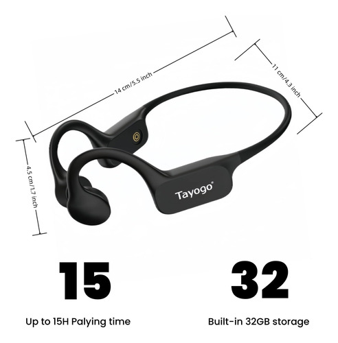 Fone de ouvido à prova d'água, Tayogo W22 projetado para trabalhar continuamente sob a água de 9 pés ou 3 metros, os fones de ouvido de natação subaquática com modo MP3 são ideais para natação e outras atividades subaquáticas. Curta músicas, podcasts ou audiolivros com todas as suas sessões de natação sem se preocupar, mantendo você motivado e entretido enquanto treina. Com o IPX8 e o revestimento totalmente selado, ele possui um microfone embutido, atenda suas chamadas telefônicas em qualquer condição. – Modos Bluetooth + MP3Este fone de ouvido subaquático IP68 para nadar com Bluetooth 5.4 garante uma experiência de usuário de alta qualidade. O microfone embutido suporta chamadas claras e também um alcance de conexão Bluetooth de até 10 metros (33 pés) com base em terra. O modo MP3 com design de memória de 32 GB permite que você curta músicas, podcasts ou audiolivros enquanto nada ou outros cenários subaquáticos. Clique duas vezes para alternar o modo bluetooth ou mp3. – Impermeável IP68 Este fone de ouvido à prova d'água possui certificação IPX68 à prova d'água, garante o trabalho contínuo sob a água a 5 metros de profundidade. Mudar para o modo MP3, ouvir músicas favoritas tornaria a natação e outras atividades subaquáticas muito mais interessantes. Estes fones de ouvido de condução óssea possuem revestimento totalmente selado, sem se preocupar com o uso subaquático. – Os fones de ouvido de condução óssea WearTrue, confortáveis e estáveis, permitem que você desfrute de música de alta qualidade com o máximo conforto auditivo dentro ou fora da água. O revestimento de silicone premium garante um toque suave. O pacote do produto inclui uma corda ajustável para acomodar diferentes tamanhos de cabeça. Clique em nossos vídeos e descubra como usar corda ajustável. – Tempo de jogo de 15 horas Este fone de ouvido subaquático para natação está equipado com bateria de 300mAh, oferecendo até 15 horas de reprodução contínua. Com capacidade de carregamento magnético rápido, você pode obter uma carga completa em apenas 1,5 horas. Nosso produto inclui USB para plugue tipo C, é fácil conectar-se a diferentes dispositivos. Clique em nossos vídeos e siga as etapas para baixar músicas. – Construção leve e segura. Esses fones de ouvido abertos apresentam estrutura premium em liga de titânio revestida com acabamento patenteado revestido com silicone, o que os torna excepcionalmente fortes e resistentes. O acabamento em silicone oferece um toque suave nas maçãs do rosto, minimizando a pressão. Integra-se perfeitamente com toucas e óculos de natação ou óculos de sol e capacetes de bicicleta.