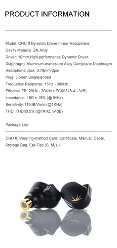Fones de ouvido MOONDROP CHU II High Performance Dynamic Driver iEMS Cabo intra-auricular intercambiável Características do fone de ouvido Hifi 1.