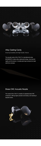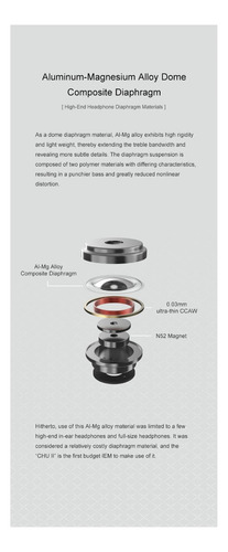 Diafragma composto por cúpula de liga de alumínio e magnésio, materiais de diafragma de fone de ouvido de alta qualidade. 2. 2. Liga de fundição por cavidade, garantindo durabilidade e textura de alta qualidade.
