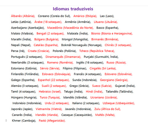 Idiomas traduzidos: 144;