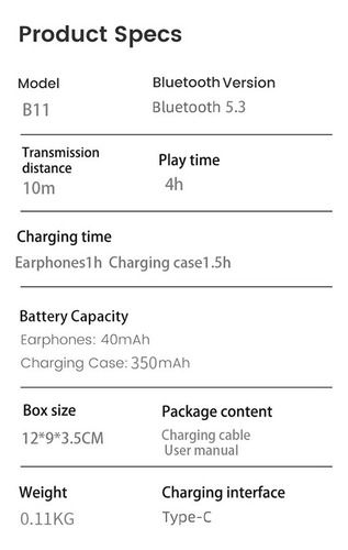 Bateria do fone de ouvido: 80mah;