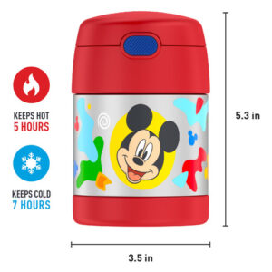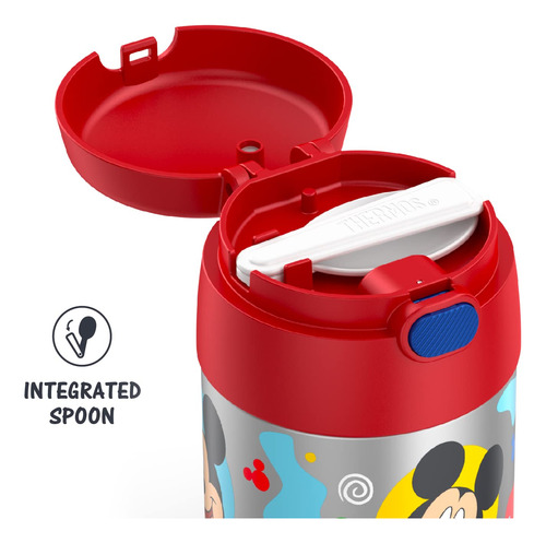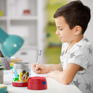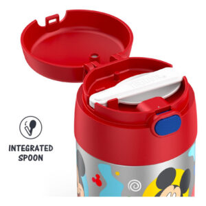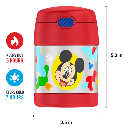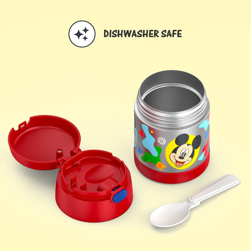 O frasco de alimentos FUNtainer de 10 onças da marca Thermos é isolado a vácuo para manter os alimentos quentes quentes e os frios frios – e, como foi projetado para crianças, também é colorido e divertido. Mande-os para a escola com sua sopa favorita para que possam saboreá-la fresca e quente na hora do almoço. Se eles estiverem com vontade de um lanche frio, embale-o com iogurte e frutas vermelhas ou maçãs e manteiga de amendoim. O pote de comida FunTainer é leve e compacto, com uma tampa de botão de pressão para que seja fácil de transportar e abrir. Para limpar, você pode colocar sua jarra de comida FUNtainer na máquina de lavar louça; no entanto, é recomendável lavar à mão. Colher incluída.