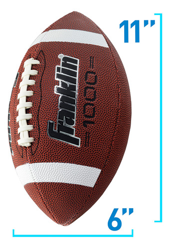 Futebol de tamanho oficial da Franklin Sports – Futebol ao ar livre All-Weather 1000 Regulations – Futebol de couro sintético para adultos – Aderência extra de futebol de tamanho oficial – Marrom e branco – TAMANHO OFICIAL: Esta bola de futebol é construída com as mesmas dimensões das bolas usadas pelos profissionais da NFL para ajudar a dar um toque autêntico aos seus jogos de quintal – ADERÊNCIA EXTRA: esta bola de futebol tem uma capa de couro sintético projetada para fornecer aderência adicional para facilitar a captura e o arremesso – CADARÇOS PRO STYLE: O estilo profissional, cadarços costurados à mão são fáceis de segurar para que os jogadores possam lançar espirais apertadas sobre o campo — DURABILIDADE PREMIUM: esta bola de futebol é construída de forma resistente com materiais para qualquer clima para que você possa jogar chuva ou faça sol temporada após temporada — BOLA DE TREINO PERFEITA: esta bola durável para atividades ao ar livre é feita para durar e é perfeita para treinar ou jogar futebol com bandeira de quintal