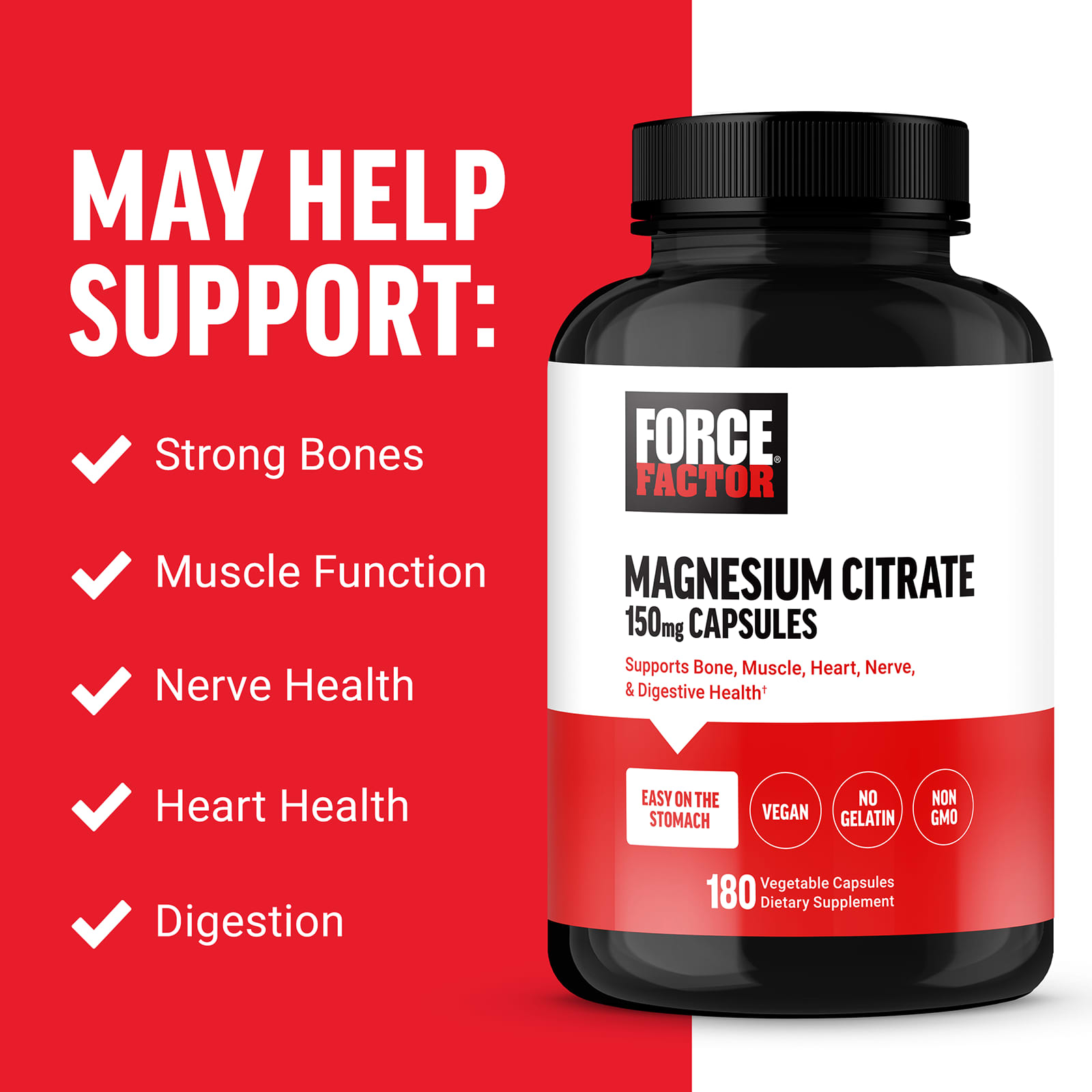 Force Factor Citrato de Magnésio 150 mg 180 Cápsulas Vegetais – Force Factor Suplementos Minerais Magnésio Citrato de Magnésio.