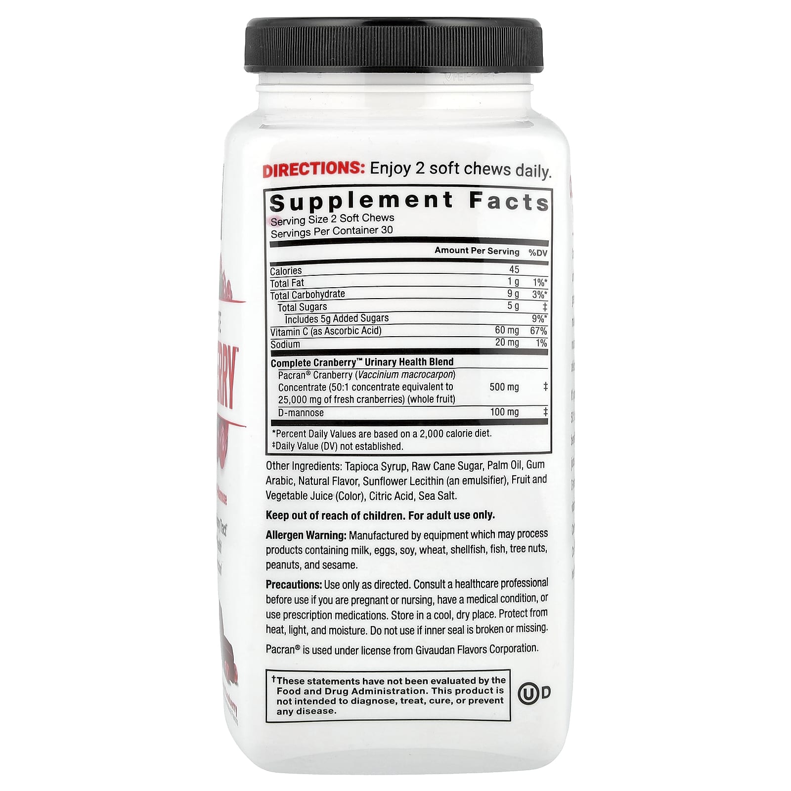 É potencializado pela Pacran®, uma mistura de cranberry 50:1 superconcentrada que oferece os mesmos benefícios que uma xícara cheia de suco de cranberry fresco. Cada deliciosa cápsula mastigável também é fortificada com D-manose, para maior proteção da bexiga, e vitamina C, para promover um sistema imunológico saudável. Conveniente, eficaz e saboroso, o Complete Cranberry™ torna o cuidado da sua saúde urinária um deleite diário.