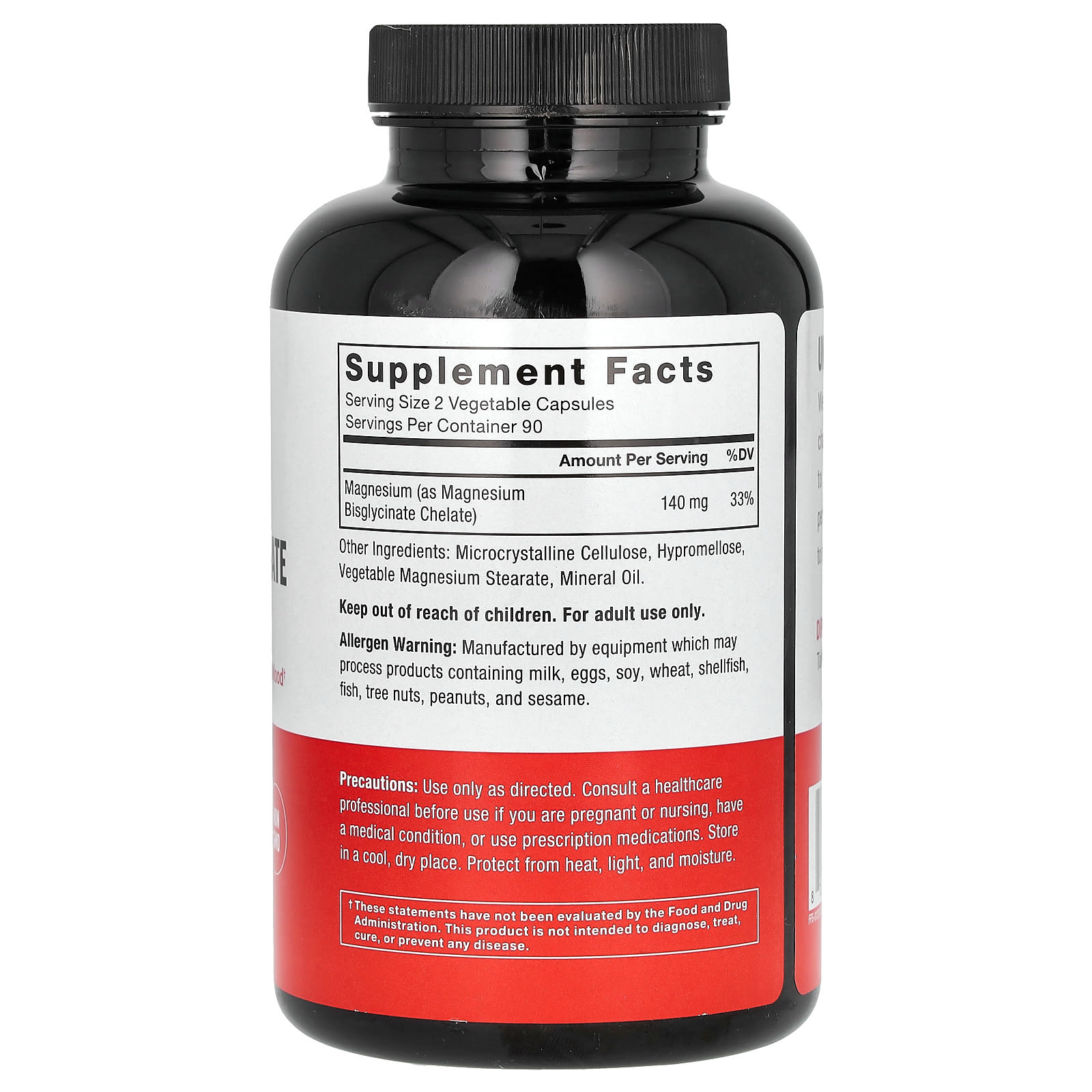 | Magnésio (como bisglicinato de magnésio) | 140 mg | 33% |