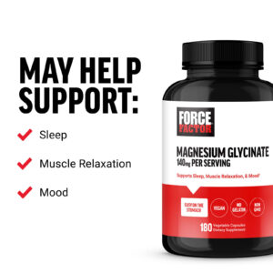 Force Factor Glicinato de Magnésio 180 Cápsulas Vegetais (70 mg por Cápsula) – Force Factor Suplementos Minerais Magnésio Glicinato de Magnésio.