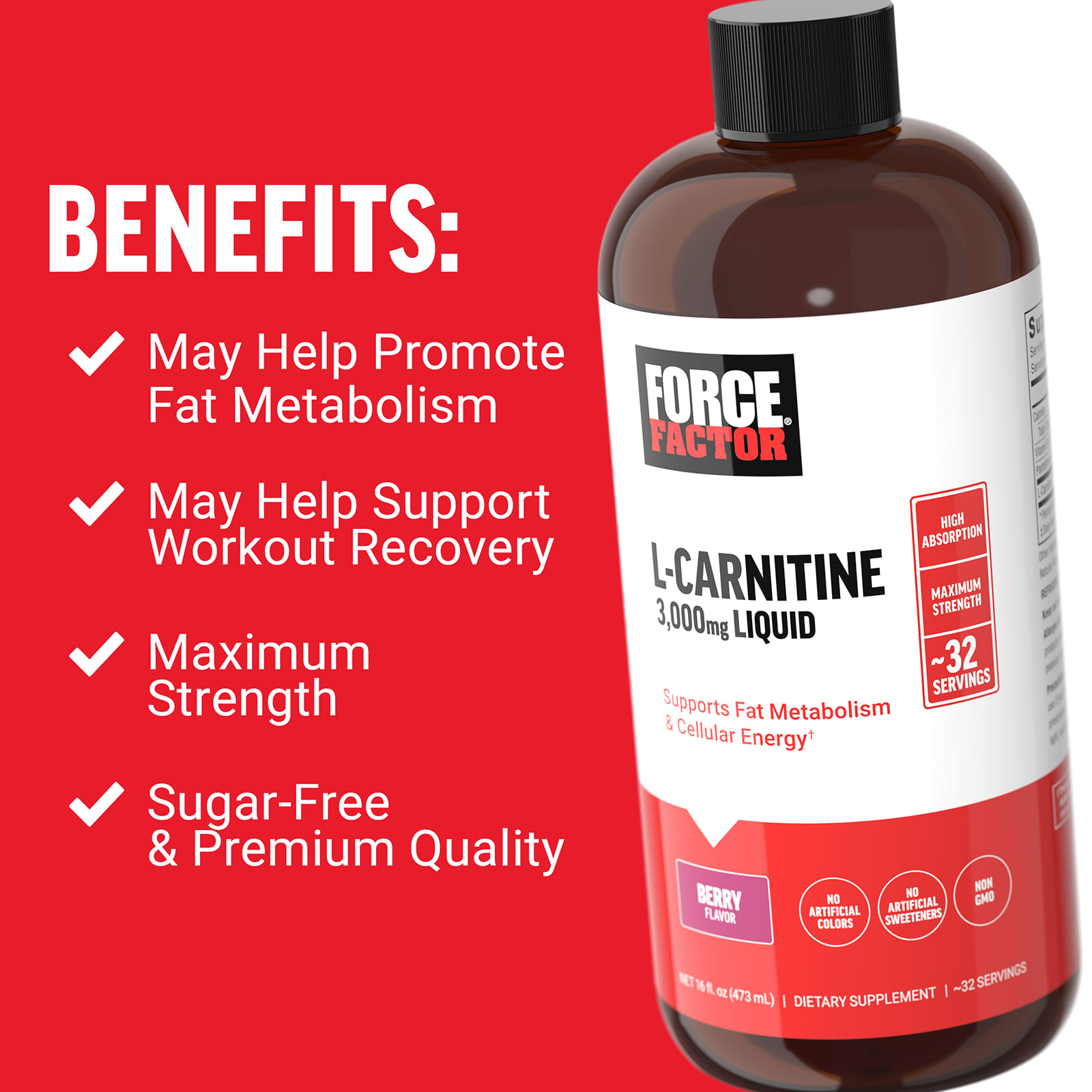 Force Factor L-Carnitina Líquida Fruto Silvestre 3.000 mg 473 ml (16 fl oz) – Force Factor Suplementos Aminoácidos L-carnitina.