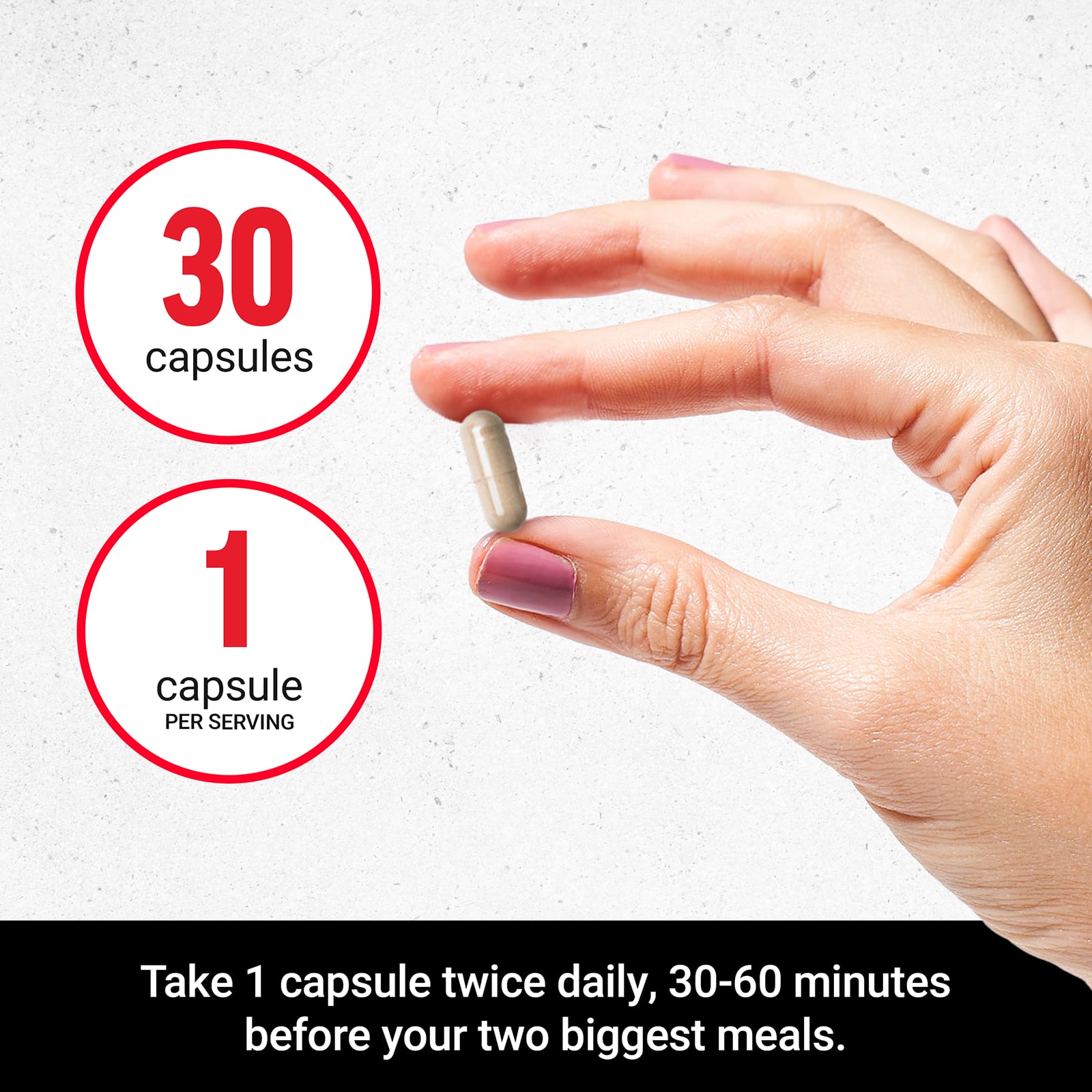 Tome 1 cápsula duas vezes ao dia, 30 a 60 minutos antes de suas duas refeições principais. Não tome 4 horas antes de dormir.