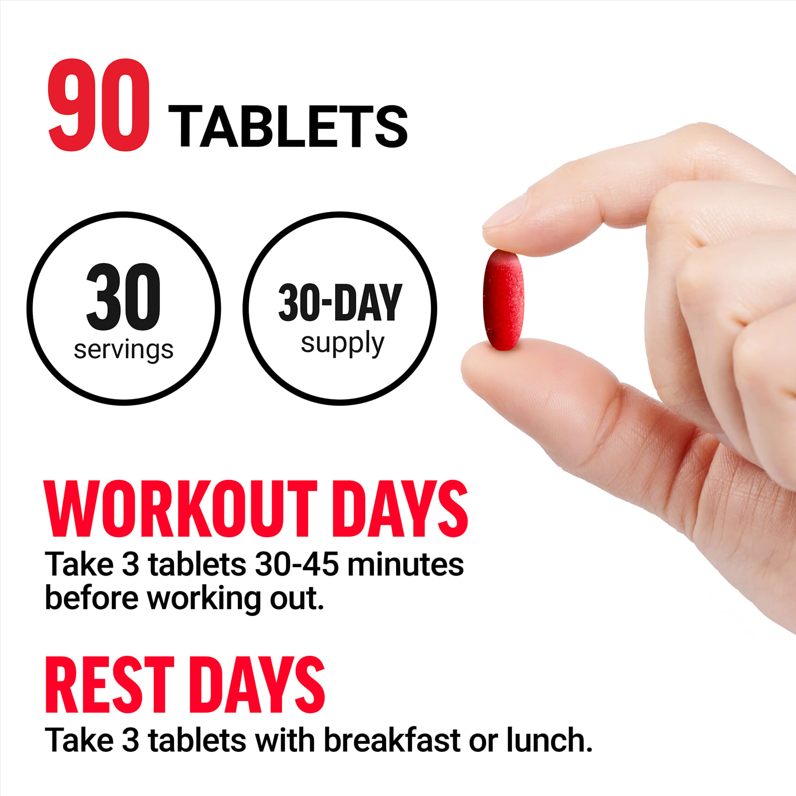 Dias de Treino: Tome 3 comprimidos 30-45 minutos antes do treino.