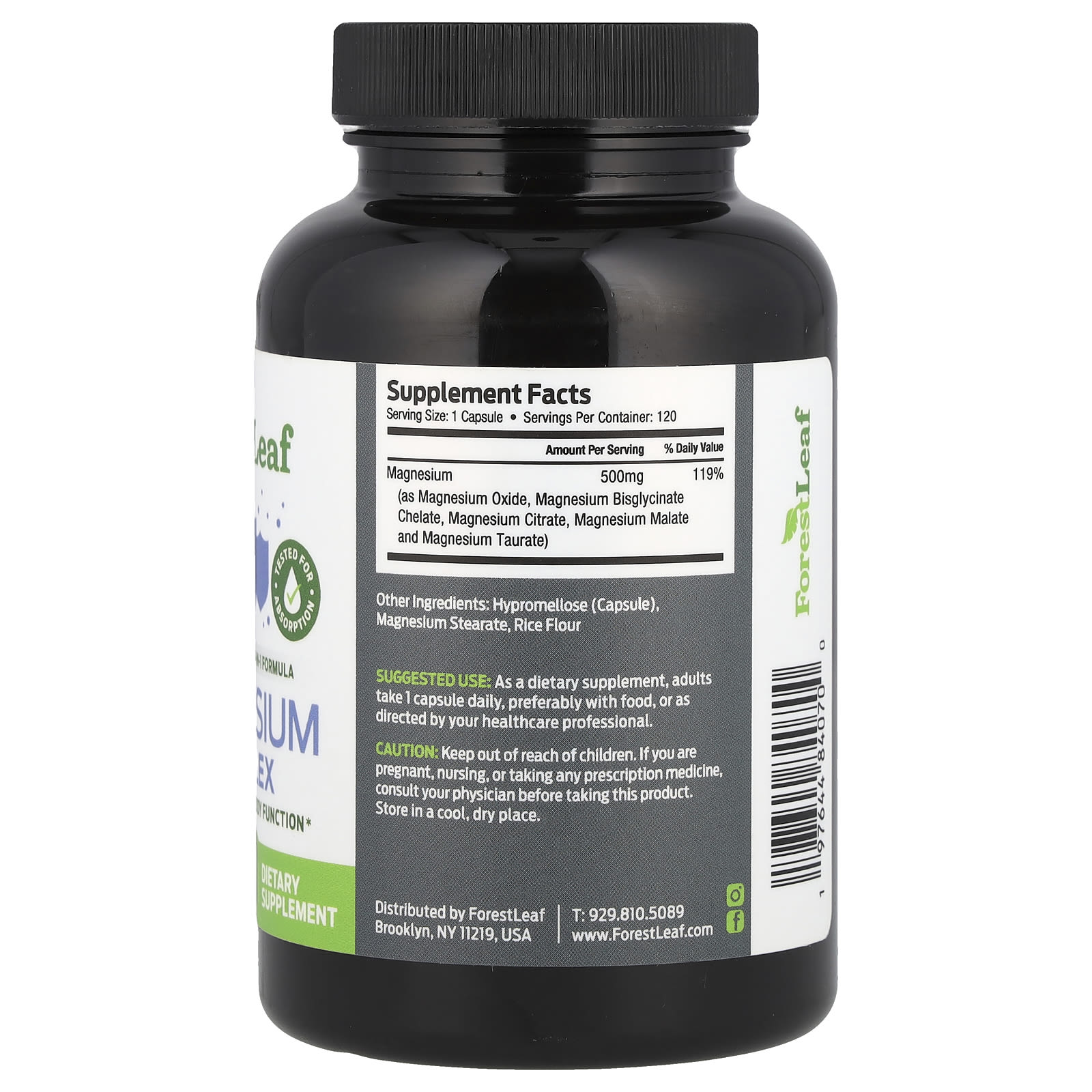 Forest Leaf Complexo de Magnésio Avançado 500 mg 120 Cápsulas Vegetais – Forest Leaf Suplementos Minerais Magnésio Complexo de Magnésio.