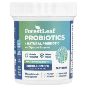Forest Leaf Probióticos + Prebiótico Natural com Enzimas Digestivas Força Máxima 30 Cápsulas Vegetarianas – Forest Leaf Suplementos Saúde Intestinal Probióticos Lactobacillus.
