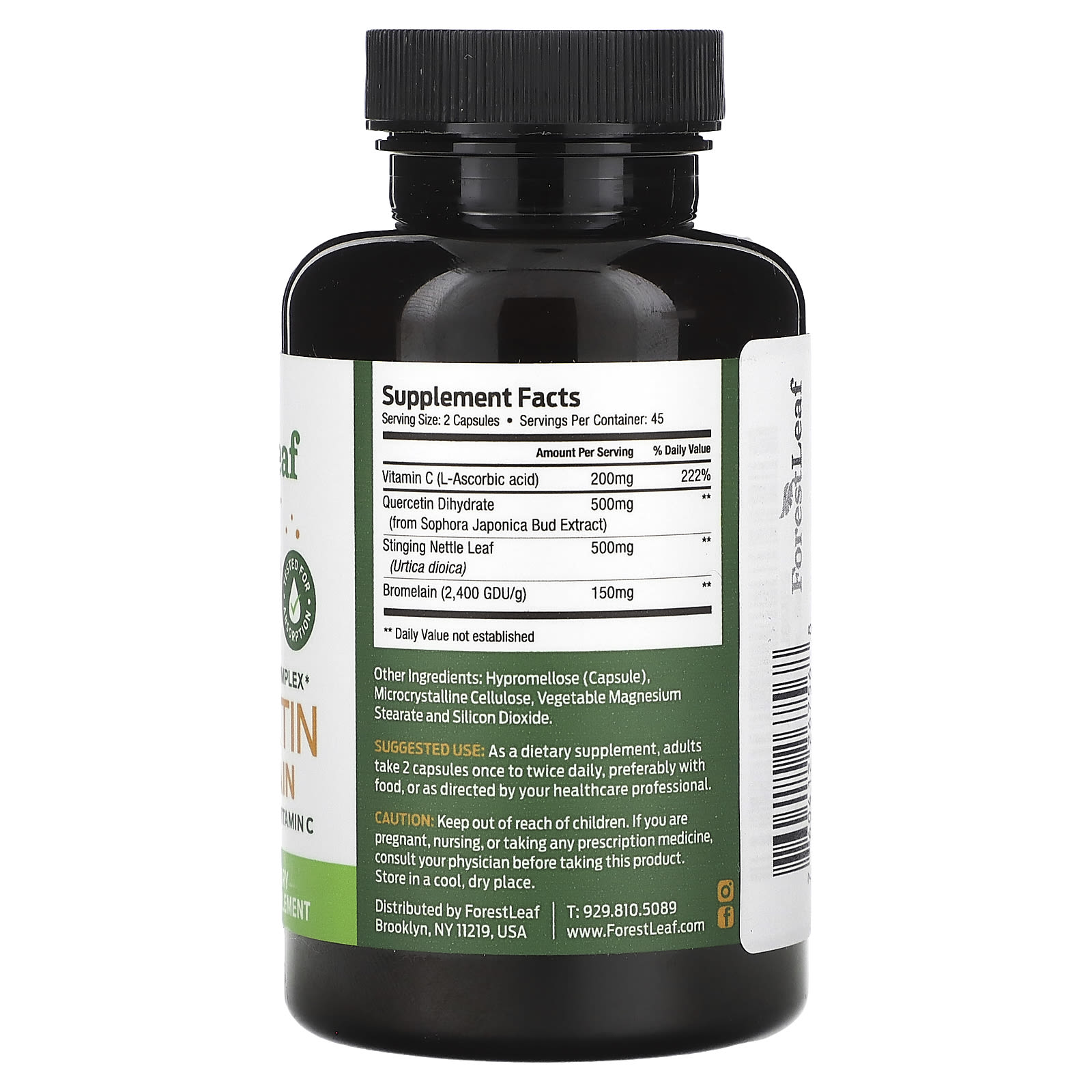 Forest Leaf Quercetina Bromelaína + Urtiga e Vitamina C 90 Cápsulas Vegetais – Forest Leaf Suplementos Antioxidantes Quercetina Quercetina e Bromelina Saúde Intestinal Enzimas Digestivas Bromelain.