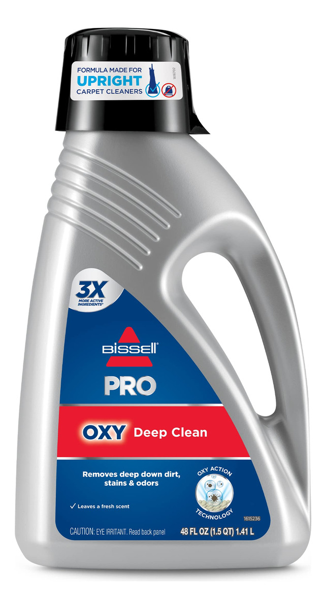 BISSELL PRO OXY Deep Clean Formula, 48 oz. (3156) – Every BISSELL purchase helps save pets. BISSELL proudly supports BISSELL Pet Foundation and its mission to help save homeless pets. – Removes deep down dirt, stains and odors. – Safe on carpet, area rugs and upholstery. – Great for red wine, coffee and grape juice. – Formula made for upright carpet cleaners. – Earth friendly formula. Contains no heavy metals, phosphates or dyes. Biodegradable detergents. – Safe to use around kids and pets when used as directed.