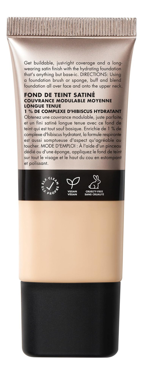 Base e.l.f. Soft Glam, cobertura média, base líquida duradoura e montável para um acabamento suave e acetinado, vegana e livre de crueldade, 13 bases líquidas neutras e duradouras: alcance o ponto ideal dos sonhos entre a batida completa e quase inexistente com a base de cetim Soft Glam de longa duração da e.l.f. Cosmetics. – COBERTURA MÉDIA E EDIFICÁVEL: A base de acabamento acetinado e.l.f. Cosmetics oferece uma base de cetim Soft Glam de longa duração. cobertura e acabamento acetinado. — FÓRMULA RESPIRÁVEL: infundida com 1% de complexo hidratante de hibisco, além de extratos de frutas, essa base líquida respirável não obstrui os poros e É tão gostoso quanto parece. Aqui não fica endurecido ou pesado, apenas uma pele macia e acetinada. – Para vários tipos de pele: essa base é ótima para peles secas, oleosas e mistas. – INGREDIENTES QUE ADORAM A PELE: Todos os produtos da ELF são feitos com os ingredientes que você deseja, menos as toxinas que você não vende, a preços acessíveis. Todos os produtos da e.l.f. são 100% livres de crueldade e veganos.