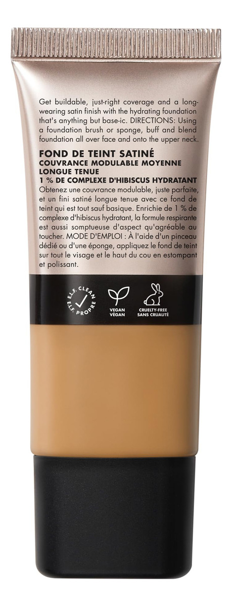 Base e.l.f. Soft Glam, cobertura média, base duradoura e montável para um acabamento suave, acetinado, vegana e livre de crueldade, 40 bronzeados – base líquida de longa duração: alcance o ponto ideal dos sonhos entre a batida completa e quase inexistente com a base de cetim Soft Glam de longa duração da e.l.f. Cosmetics. – COBERTURA MÉDIA E EDIFICÁVEL: A base de acabamento acetinado e.l.f. Cosmetics oferece uma base de cetim Soft Glam de longa duração. cobertura e acabamento acetinado. — FÓRMULA RESPIRÁVEL: infundida com 1% de complexo hidratante de hibisco, além de extratos de frutas, essa base líquida respirável não obstrui os poros e a sensação tão boa quanto parece, sem aglomeração ou peso aqui, apenas uma pele macia e acetinada. – Para vários tipos de pele: esta base é ótima para peles secas, oleosas e mistas. – INGREDIENTES QUE ADORAM A PELE: Todos os produtos da ELF são feitos com os ingredientes que você deseja, menos as toxinas que você não usa, a preços acessíveis. Todos os produtos da e.l.f. são 100% livres de crueldade e veganos.