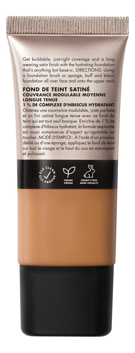 Base e.l.f. Soft Glam, cobertura média, base duradoura e montável para um acabamento suave, acetinado, vegano e livre de crueldade, 42 bronzeados neutros — BASE LÍQUIDA DE LONGA DURAÇÃO: alcance o ponto ideal dos sonhos entre a batida completa e quase inexistente com a base de cetim Soft Glam de longa duração da e.l.f. Cosmetics. – COBERTURA MÉDIA E EDIFICÁVEL: A base de acabamento acetinado e.l.f. Cosmetics oferece uma base de cetim Soft Glam de longa duração. cobertura e acabamento acetinado. — FÓRMULA RESPIRÁVEL: infundida com 1% de complexo hidratante de hibisco, além de extratos de frutas, essa base líquida respirável não obstrui os poros e É tão gostoso quanto parece. Aqui não fica endurecido ou pesado, apenas uma pele macia e acetinada. – Para vários tipos de pele: essa base é ótima para peles secas, oleosas e mistas. – INGREDIENTES QUE ADORAM A PELE: Todos os produtos da ELF são feitos com os ingredientes que você deseja, menos as toxinas que você não vende, a preços acessíveis. Todos os produtos da e.l.f. são 100% livres de crueldade e veganos.