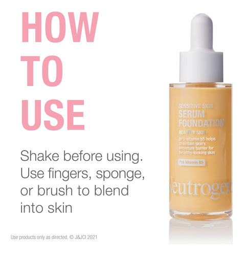 Base de sérum Neutrogena Healthy Skin Sensitive Skin com pró-vitamina B5, base líquida para correção de cor e minimização de poros e sérum facial, cobertura edificável, média 0,1, 1 onça a 1 onça de sérum Neutrogena Healthy Skin Sensitive Skin Sensitive Skin Sensitive Skin com pró-vitamina B5 na tonalidade Medium 01, para ajudar a manter a pele saudável, desfocar imperfeições e projetada para minimizar a aparência de linhas finas e cobrir poros – A base de cobertura Sheer Buildable é infundida com sérum multitarefa para cuidar da pele. Esta base líquida corretora de cor para maquiagem sensível foi projetada para reduzir a aparência de vermelhidão – Com a Pro Vitamin B5, um ingrediente reconhecido por dermatologistas conhecido por ajudar a manter a barreira de umidade da pele para uma pele com aparência saudável, o sérum facial também é uma base que desfoca os poros que oferece cobertura personalizável para uma aparência natural de maquiagem – A base sérum não comedogênica que desfoca imperfeições é livre de fragrâncias, corantes, ftalatos, álcool e sulfatos. Essa base líquida transparente a leve funciona como partes iguais de cuidados com a pele e maquiagem e é ótima para peles sensíveis. Para usar a base Neutrogena Healthy Skin Facial Serum Foundation, primeiro agite suavemente o frasco. Em seguida, use dedos limpos, esponja ou pincel de base para misturar a pele, borrando a maquiagem na pele como parte de sua rotina diária de cuidados com a pele e beleza.