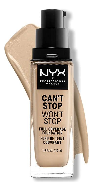 Base NYX PROFESSIONAL MAKEUP Can't Stop Won't Stop, cobertura total de 24 horas com acabamento fosco — Nude — Base líquida fosca: leve, impermeável e altamente pigmentada, a base NYX Professional Makeup Can't Stop Won't Stop Full Coverage é uma base líquida à prova d'água de longa duração que vem em uma ampla variedade de tons lisonjeiros que não são transferidos — Duradoura: cada tonalidade líquida cremosa desliza suavemente, oferecendo uma cobertura fosca que permanece fiel por até 24 horas; Esse superdotado também trabalha para controlar o brilho e matificar sua tez o dia todo – Face From Base para finalizar: complete seu look de maquiagem com nossa linha completa de produtos faciais para ajudar na correção e cobertura de cores, desde corretivo, blush, bronzeador, bases e contorno até paletas e pós – Cosméticos sem crueldade: acreditamos que os animais pertencem aos nossos braços, não ao laboratório; toda a nossa maquiagem é certificada e reconhecida pela PETA como uma marca livre de crueldade; não testamos nenhum de nossos produtos em animais – Descubra a maquiagem profissional NYX: experimente todos os nossos produtos de maquiagem profissional hoje, desde sombra, delineador e cílios postiços até batom líquido e brilho labial , primer, corretivo, sprays fixadores e maquiagem para sobrancelhas