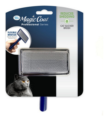 A série Magic Coat Professional apresenta ferramentas multiuso premium para cuidar de animais de estimação para uma experiência de salão em casa. A escova Cat Slicker apresenta cerdas finas de arame que capturam rápida e suavemente os cabelos soltos sem irritar a pele. O pincel estimula os óleos naturais da pele para promover uma pelagem saudável e brilhante. Além disso, a alça leve de madeira da escova para gatos oferece o máximo de conforto e controle ao cuidar de seu animal de estimação. Projetada com uma cabeça de escova compacta específica para gatos e gatinhos, esta escova lisa é ideal para pelagens médias ou longas. Feito especialmente para gatos e gatinhos O design compacto é fácil de manobrar no corpo dos gatos. Reduz a queda de cabelo A escova macia e lisa para gatos remove o excesso de pelos de maneira suave e eficaz. ESTIMULA OS ÓLEOS NATURAIS DA PELAGEM Aumenta o brilho para uma pelagem saudável e brilhante. Cabo de madeira leve A escova de soltar confortável para gatos oferece controle. Tipos de pelagem A escova lisa para cuidar de gatos é ideal para pelagens médias ou longas. TAMANHO Ideal para gatos e gatinhos.