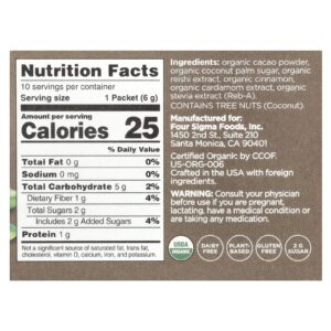 Four Sigmatic Calm Mistura de Cacau Orgânico com Cogumelo Reishi 10 Sachês 6 g (021 oz) Cada – Four Sigmatic Alimentos Chás e bebidas Cacau em Pó e Chocolate Quente.