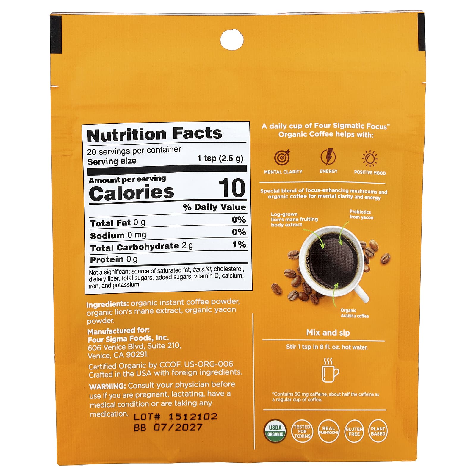 Four Sigmatic Focus Café Orgânico Instantâneo com Cogumelo Juba-de-Leão e Yacon Torra Média 50 g (176 oz) – Four Sigmatic Alimentos Chás e bebidas Coffee Café instantâneo.