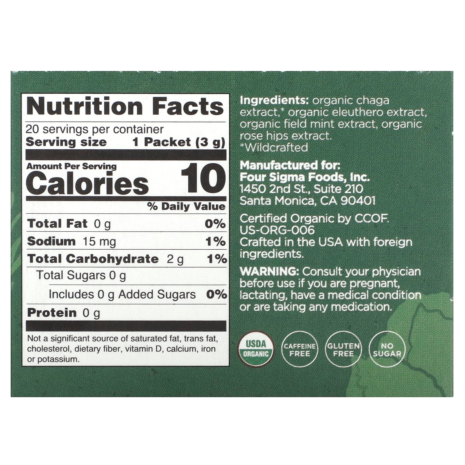 Four Sigmatic Protect Mistura Elixir Orgânica com Cogumelo Chaga e Eleutero Sem Cafeína 20 Embalagens 3 g (01 oz) Cada – Four Sigmatic Alimentos Chás e bebidas Tea Chás medicinais Suplementos Cogumelos Misturas de Cogumelos.