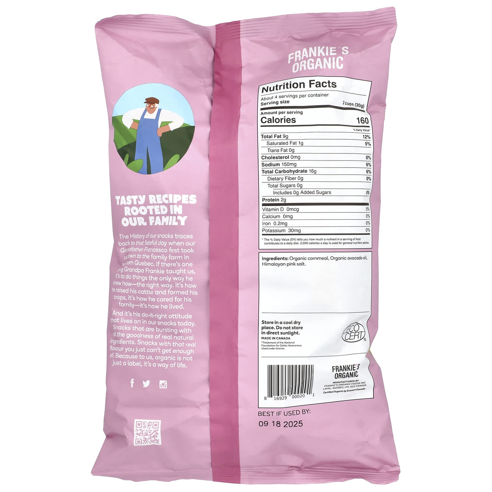 Frankies Organic Milho Puff Óleo de Abacate e Sal Rosa do Himalaia 113 g (4 oz) – Frankie’s Organic Alimentos Petiscos e lanches Snacks crocantes Puffs.